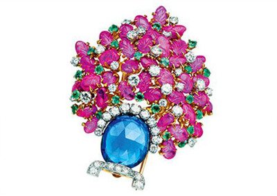 BVLGARI紫色宝石与蓝宝石镶嵌胸针