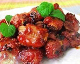 5、腌好后的排骨,再加上一两匙叉烧酱。