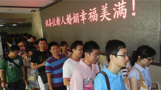 喜迎“七夕” 全国各地新人扎堆领证结婚