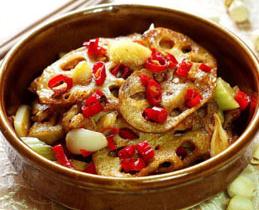 5、捞出藕片,沥干多余的油