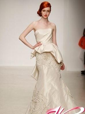 立体造型看多了,这种平面肌理感的花朵图案另有一番味道在里面,看起来很东方,很艺术,搭配欧式的上身设计,中西合璧得非常到位。