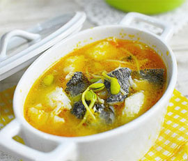 黄豆芽一把、海鱼(上海人叫雅片鱼)100克、番茄一个、鸡蛋一个、淀粉适量、胡椒粉。