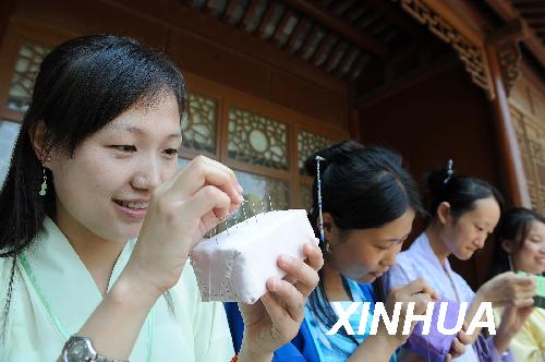身着汉服的年轻人在参加乞巧活动(资料图)