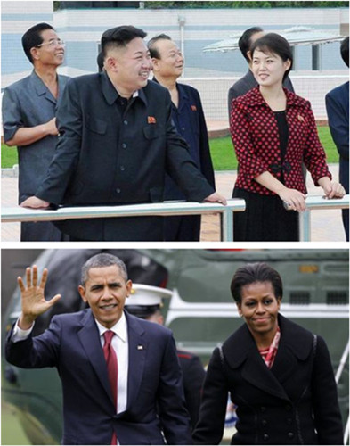 金正恩夫妇(上)和奥巴马夫妇(下)