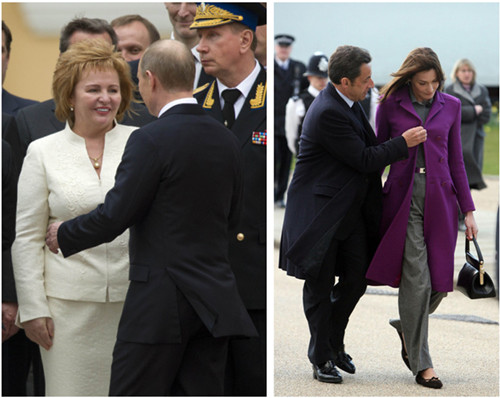 普京夫妇(左)和萨科齐夫妇(右)