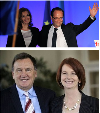 法国总统奥朗德在竞选时被媒体冠以“三无人员”的称号——没经验、没特点、没老婆。他和前任女友罗亚尔抚养了4个孩子,最后仍以分手的方式为两人的缘分画上句号。而现任女友瓦莱丽与奥朗德交往7年,迄今也没“转正”成为法国第一夫人。