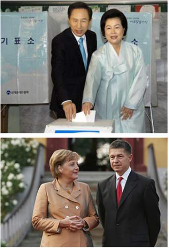 李明博夫妇(上)和默克尔夫妇(下)