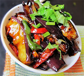 8、倒入炸好的茄子翻炒。