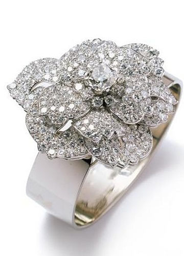 镂空设计的山茶花手镯,香奈儿的经典之作。