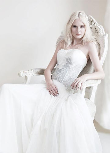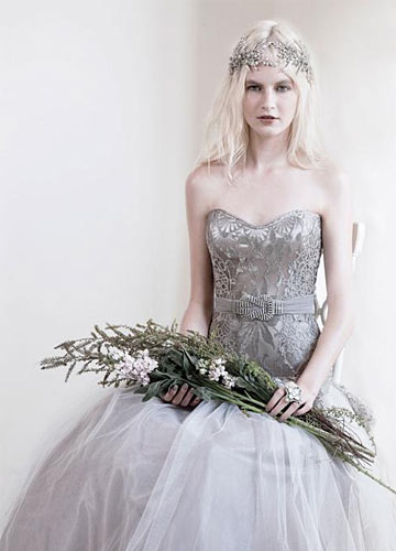 相比于最常见的白色婚纱,澳洲婚纱设计师Mariana Hardwick对银灰色的运用更显特别。银灰底色上以闪亮的水晶、蕾丝钩花点缀,或是在白色婚纱上点缀银灰色的细腻纹理,两种色彩在婚纱上演出一场“光与暗的对话”,低调的银灰色,让新娘造型更多了独特和温婉的感觉,这样的风格,你是否愿意尝试一番呢?