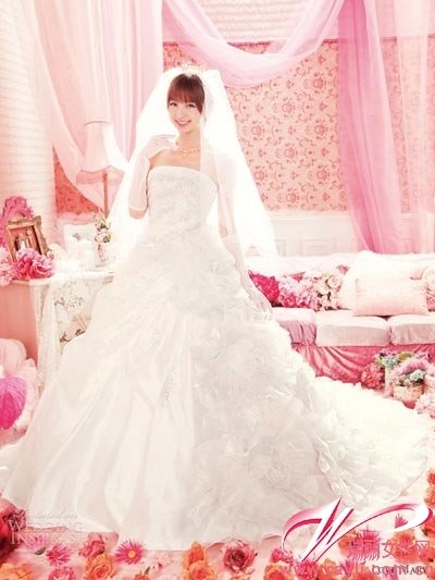 日本女子偶像团体AKB48Team A第二任队长篠田麻里子为日本婚纱品牌Love Mary倾情演绎新款婚纱,可爱的脸庞搭配靓丽色彩,像极了卡通里的人物,少女甜蜜的幸福感真心令人羡慕。