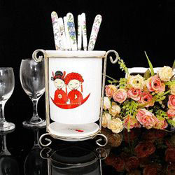 洁白的陶瓷加上鲜艳的红色卡通形象,简洁而又充满趣致,干净,漂亮,细节之处充满人性化的设计,陶瓷底部有滴水孔,下面有接盘。载满花形装饰的筷子,不仅使人赏心悦目,更为重要的是实用而不失典雅,无论放在厨房还是放到餐桌上都是一道亮丽的风景线。