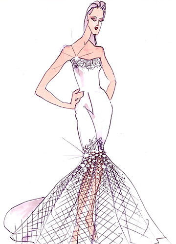 David's Bridal品牌的设计师把目光投在JA自然、随意、具有亲和力的性格上。“JA是很有魅力的明星,因为她真实,所以我们会保持她自然简洁的着装风格,同时加入一些与众不同的细节来体现她明星的身份。”设计师这样说道。于是他们为JA设计了一套露肩修身美人鱼款的礼服,婚纱前胸点缀着精致的水晶,并且延续到下摆,充满了梦幻色彩,可以令JA光芒四射。