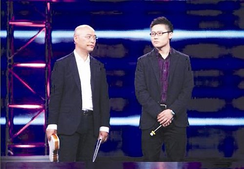 王津(右)在电视相亲现场