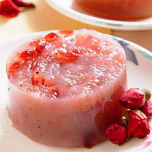 以法国玫瑰花制造的甜点,含有很高的维生素。当中有加拿大的红莓汁,配合莓肉和山楂一同制成,味道甜中带酸,玫瑰味浓郁,给味蕾另一种享受。