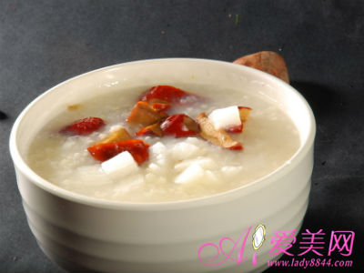 5. 然后倒入山药粒和少许黑木耳,继续煮至大米和山药软烂即可。
