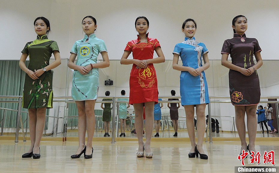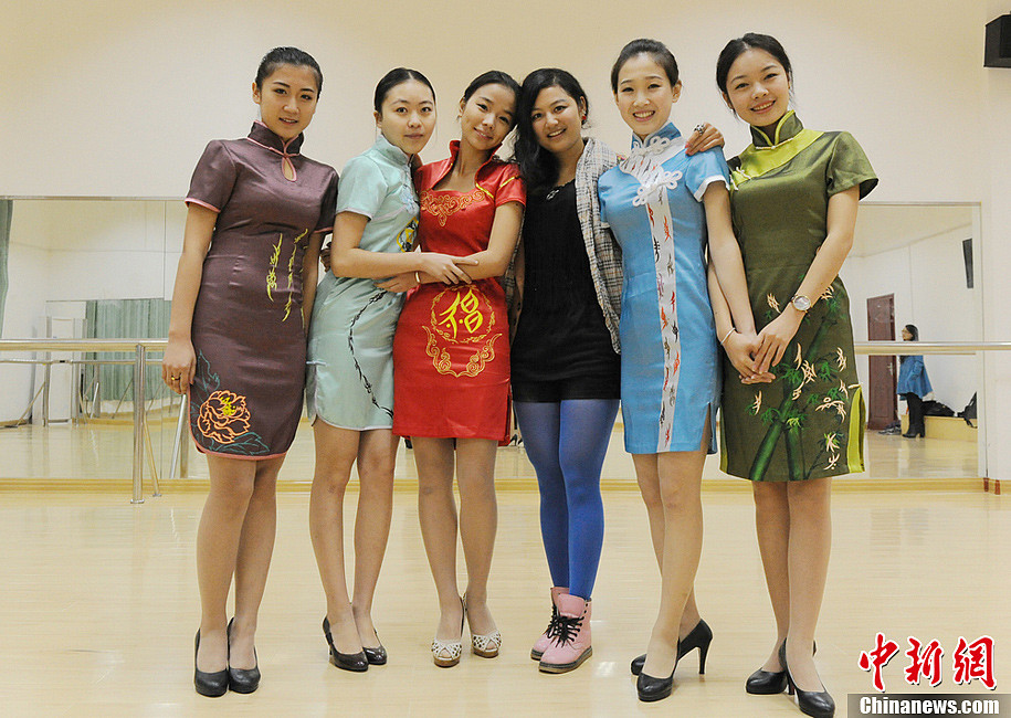 11月15日,5名湖南女子学院的学生身着“女书”旗袍在校园里亮相。据这5套旗袍的设计者周京晶介绍,女书”旗袍分为红、黄、青、蓝、紫五件不同颜色的,旗袍上有大小不一的“女书”,相互构成精美、秀丽的图案。经国家知识产权局审批,5件女书旗袍分别获得外观设计专利证书。“女书”是湖南省永州市江永县及其毗邻的道县、江华部分地区,历史上出现过的一种只在妇女之间使用的神秘文字,当地称之为“女字”。图为设计者周京晶(图右三)与身着“女书”旗袍的学妹们。杨华峰 摄