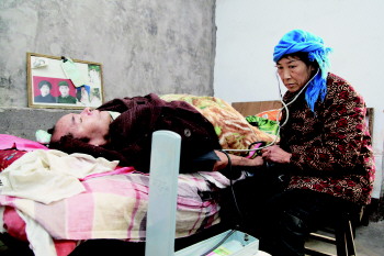 姚彩萍告诉记者,因为丈夫每天都躺在床上,血压很不稳定,她隔三差五就要帮丈夫测量一次血压,血压升高后,她就赶紧给他服药。“我的床头上堆满了大大小小的药瓶,我都快成‘家庭医生’了。”姚彩萍一边帮丈夫测量血压,一边说。