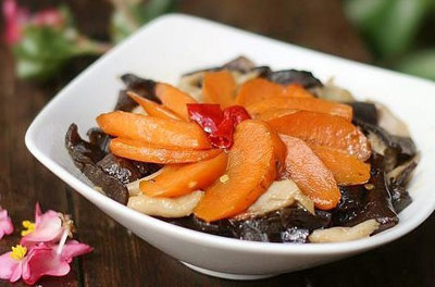主料:胡萝卜150克 黑木耳25克 平菇200克