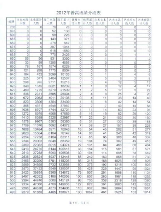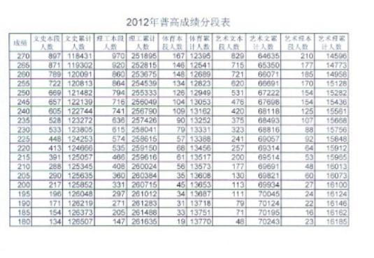 2012年高考成绩分段表1