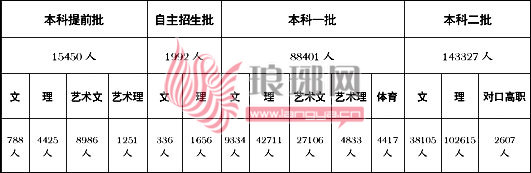 根据省招考院公布的数据,今年我省本科层次共录取考生249170人,其中,文科48563人、理科151407人、体育4417人、艺术文36092人、艺术理6084人、对口高职2607人。