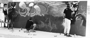 Red、Hugh、Sewin正在涂鸦。