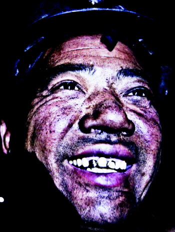 工作不一会,矿工们的脸上就被一层煤尘覆盖。