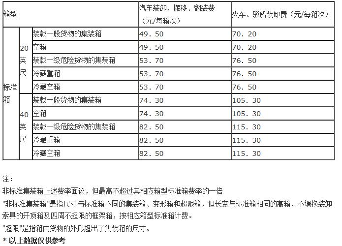 汽车、火车、驳船集装箱装卸费率参考表